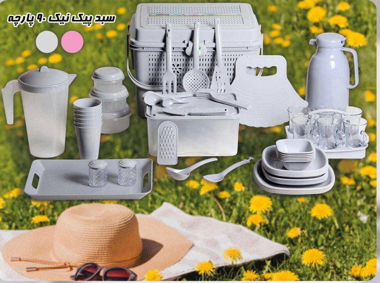 سرویس مسافرتی 90 پارچه سبد مسافرتی ظروف مسافرتی مدل صحرا با فلاکس چای کامل ترین سرویس پیکنیک