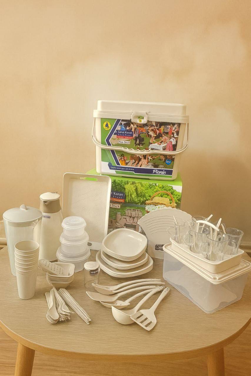 سرویس مسافرتی 90 پارچه سبد مسافرتی ظروف مسافرتی مدل صحرا با فلاکس چای کامل ترین سرویس پیکنیک